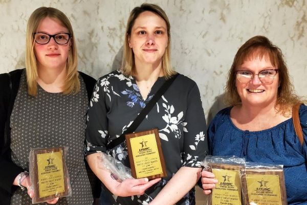 WOMEN'S TEAM CHAMPION: The Pretty Sweet Bakery team from Albion took first place in the association tournament women's division. From left are Emily Cassidy, Sarah Cassidy and Pamela Jenks. Judy Ward also was on the winning squad.