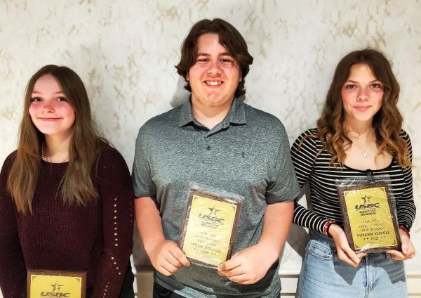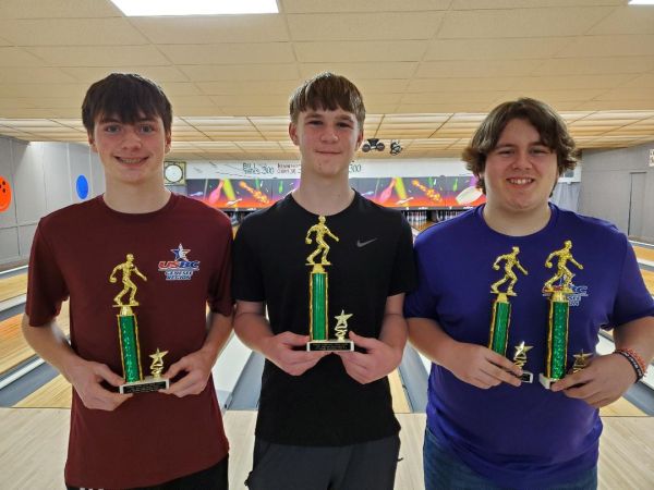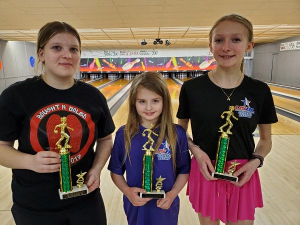 Trophies were presented to the first-place team of Dillin Goulet, Hunter Clark and Gavin Slocum and to the following individual league leaders (limit one trophy other than high average per bowler):