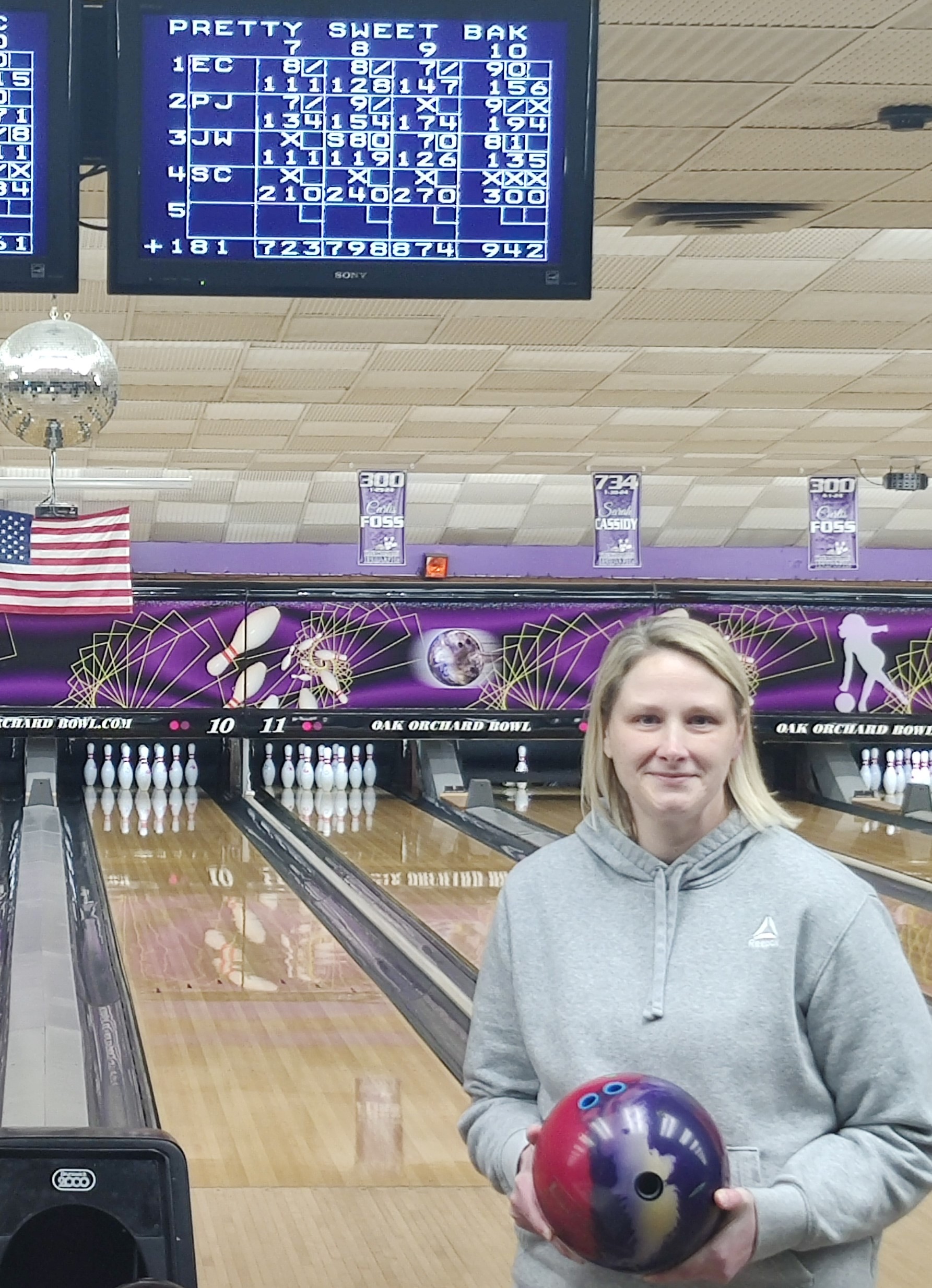 JANUARY 7, 2026 -- Congratulations to Sarah Cassidy of Albion, who rolled a 300 game in the Tuesday Ladies Merchants League at Oak Orchard Bowl last night.